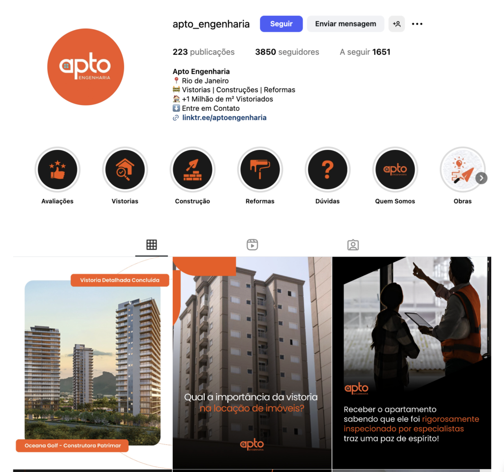 Para solicitar uma vistoria, você pode entrar em contato com a Apto Engenharia através do WhatsApp disponível na página . Basta clicar no botão “Pedir Orçamento” ou “Quero Minha Vistoria!” para iniciar o atendimento.