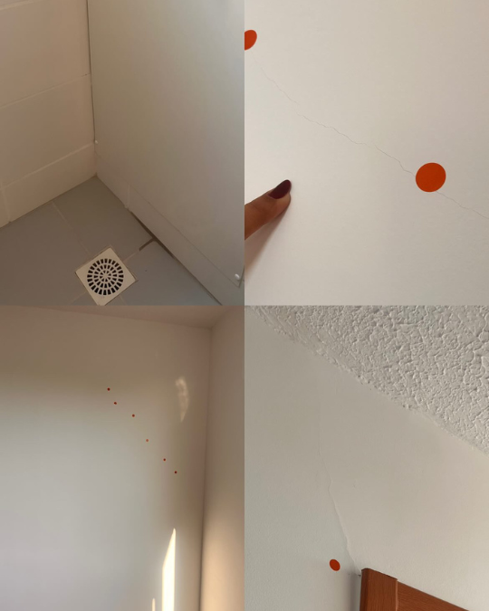 Rachaduras em paredes, tetos ou pisos.