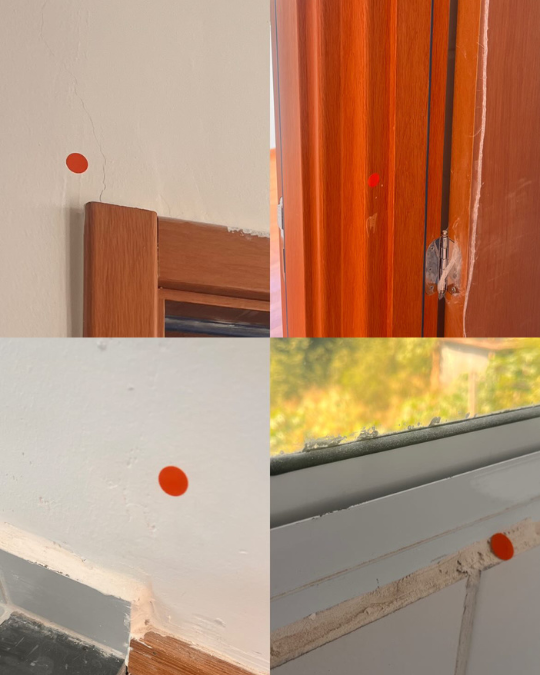 Danos estruturais, como inclinação de paredes ou pisos.